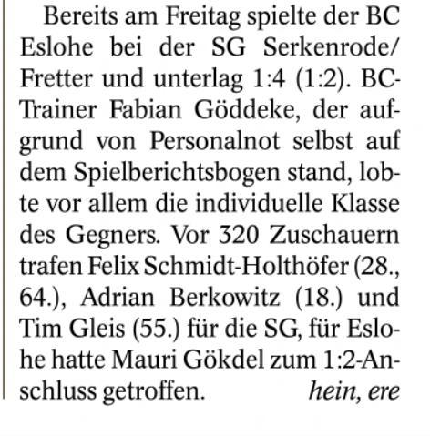 Berichte rund ums Derby (4:1) gegen BC Eslohe vom 22.08.2025