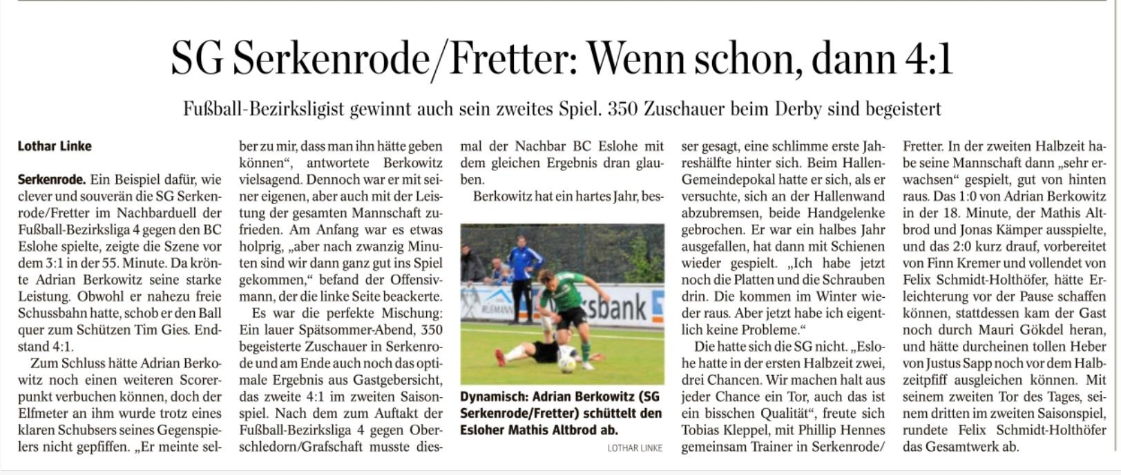 SG Serkenrode/Fretter – Wenn schon, dann 4:1 (Westfalenpost)