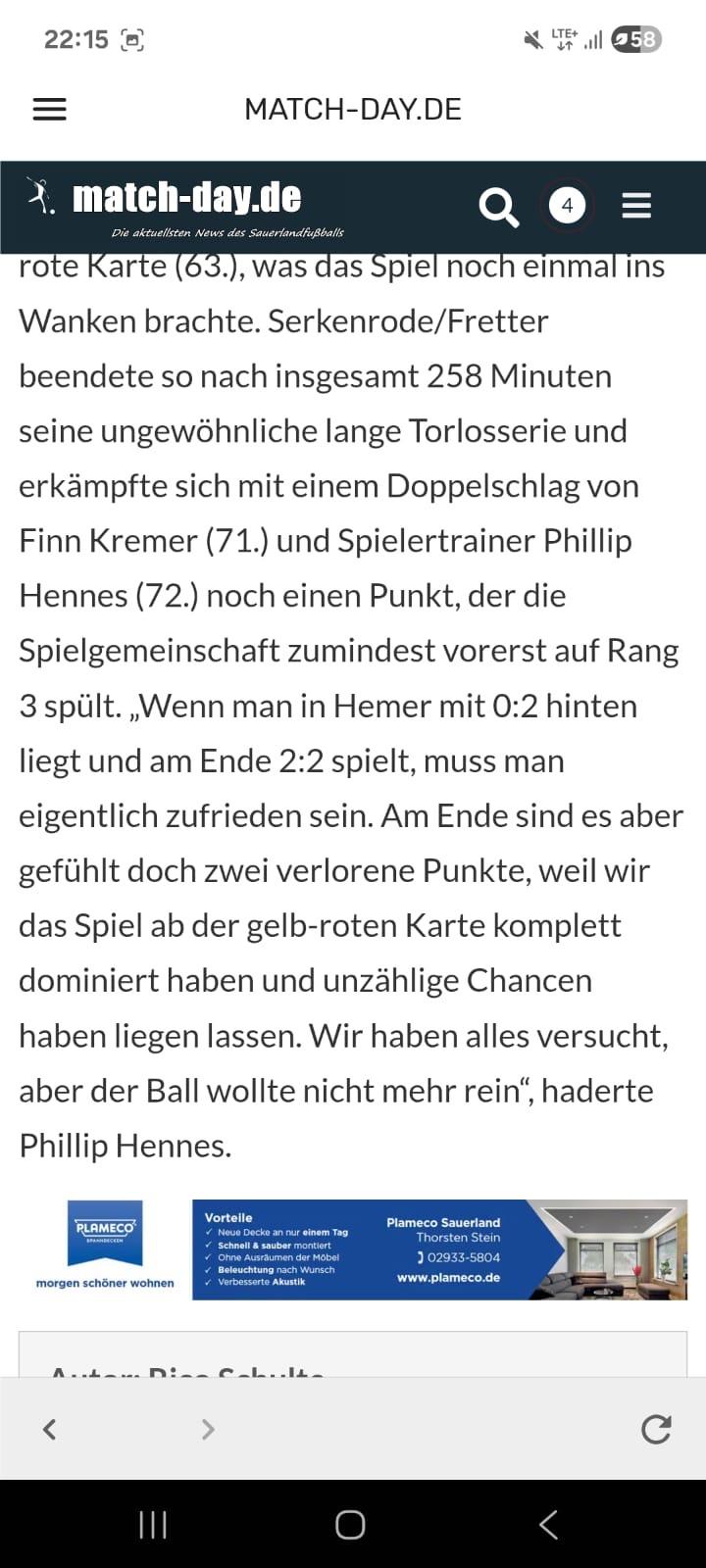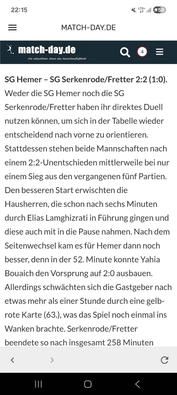 SG Hemer 2:2 (1:0) SG Serkenrode/Fretter