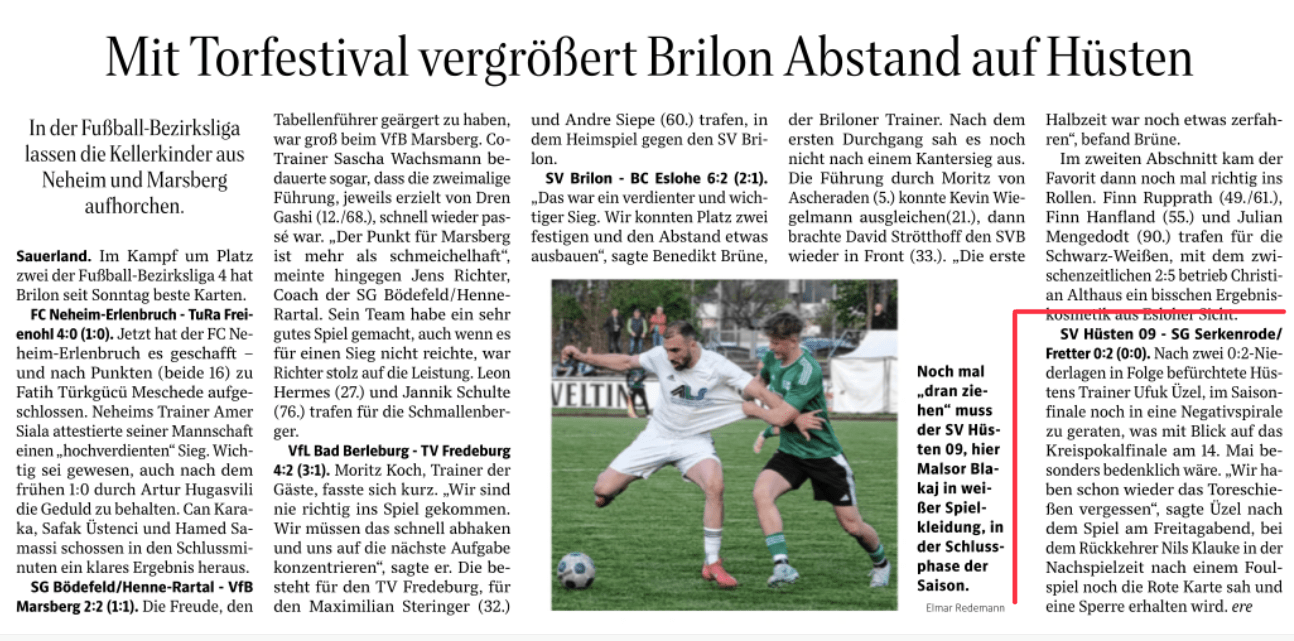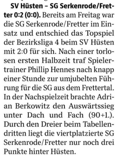 SV Hüsten 0:2 (0:0) SG Serkenrode/Fretter