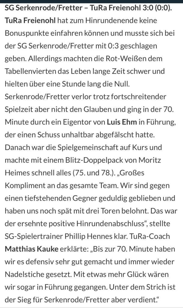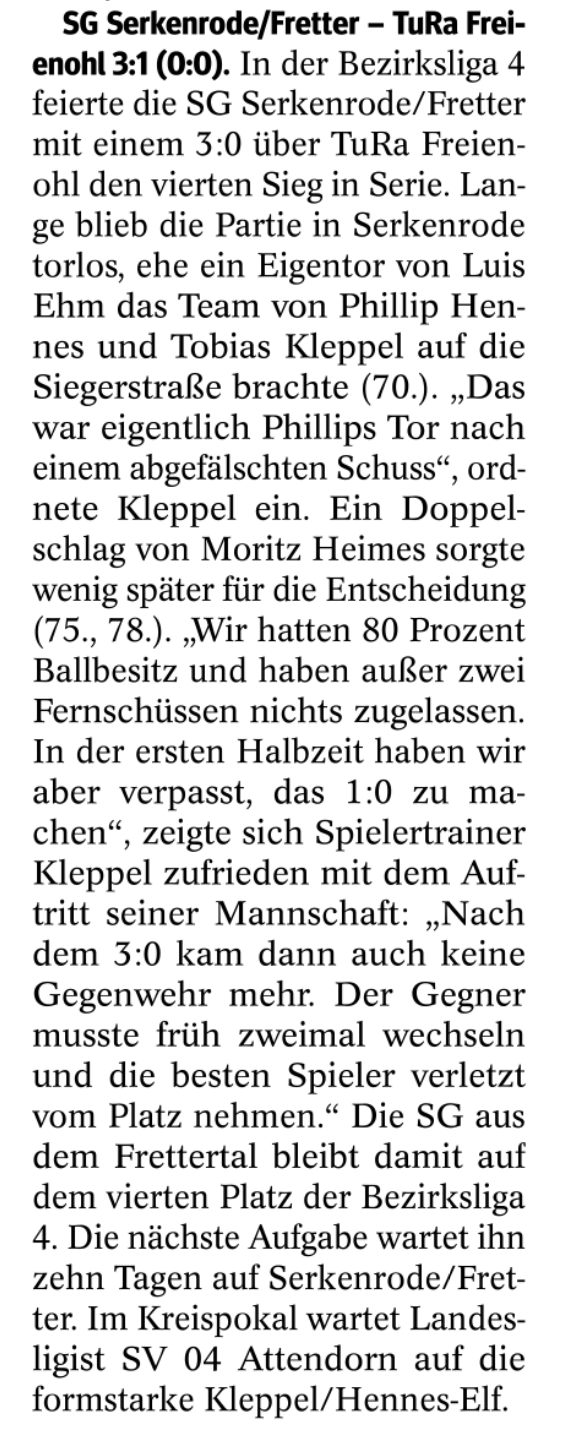 SG Serkenrode/Fretter 3:1 (0:0) TuRa Freienohl
