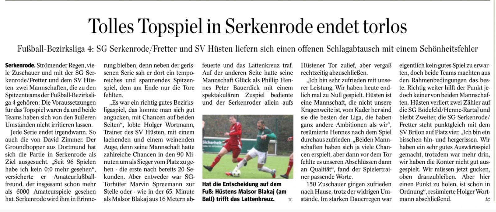 Fußball-Bezirksliga 4: SG Serkenrode/Fretter und SV Hüsten liefern sich einen offenen Schlagabtausch mit einem Schönheitsfehler